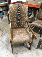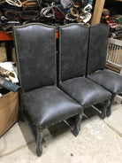 These dining chairs boast an embossed leather with a cowboy tool pattern with shimmering hints of metallic bronze highlights giving a profound, rich color that flickers to the surface through its multiple layers of finishing waxes. To complete the chair, a hardwood frame and a premium high-density foam cushion core provides lasting durability and comfort for everyday use. Best as a dynamic set, these dining chairs are hand made classics just for you.