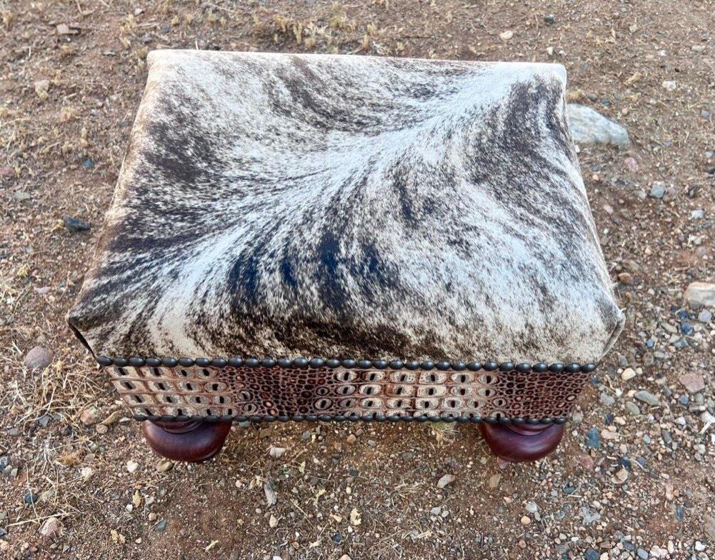 Crafted with both light brindle cowhide and croc embossed leather, our Cowhide & Croc Leather Ottoman brings a touch of sophistication to your living area. This ottoman or footstool can be used as a comfortable place to kick up your feet, or as an extra seat when needed. Its enchanting presence provides a luxurious allure to any interior.