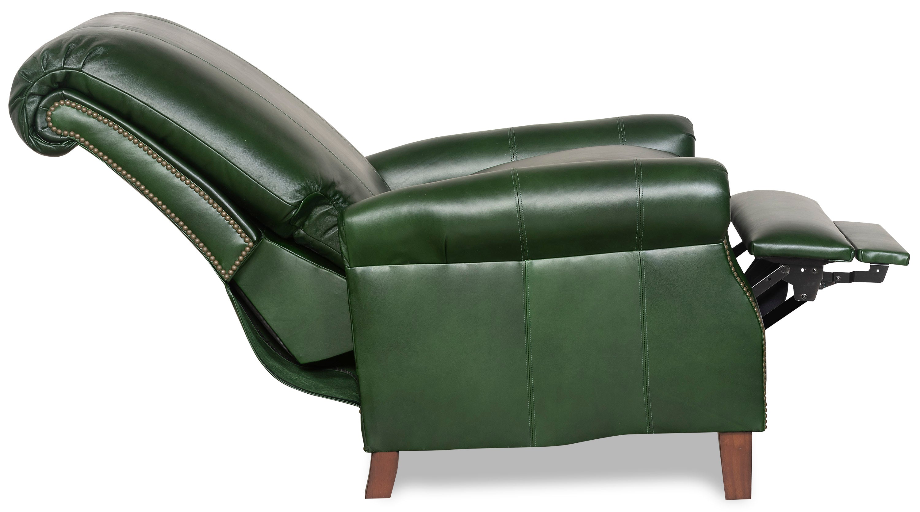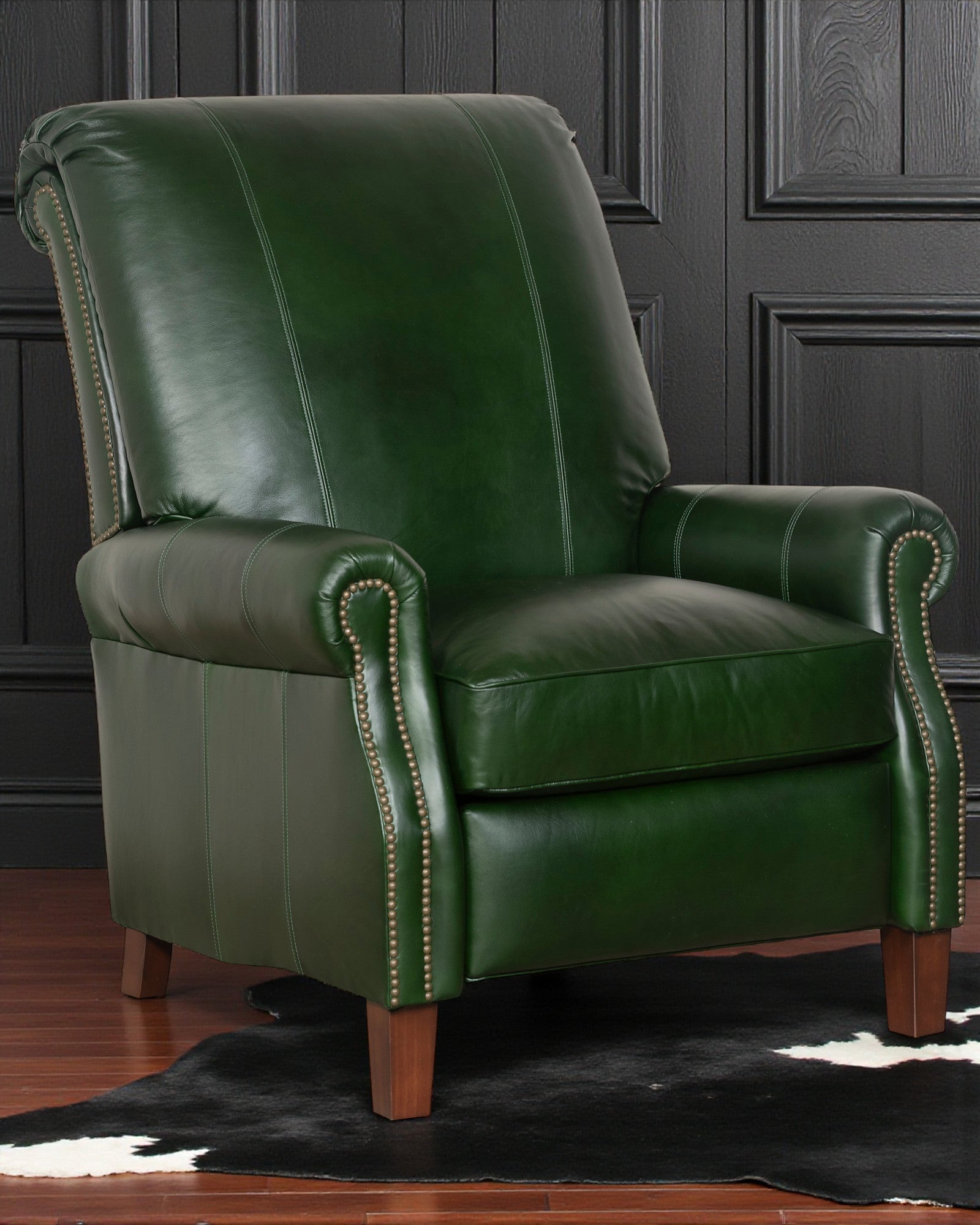 Experience refined relaxation with this meticulously handcrafted XL leather recliner, a testament to superior American manufacturing and timeless design. Upholstered in luxurious top-grain aniline leather in a distinguished olive tone, this oversized piece matures gracefully, acquiring a warm patina that enhances its sophisticated character over the years. The generous proportions provide exceptional comfort without compromise, while the classic silhouette seamlessly integrates into discerning interiors. Built with unwavering attention to detail, this investment piece delivers both enduring quality and the understated elegance that defines true craftsmanship.