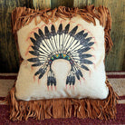 Our Headdress Throw Pillow features hand painted giclee details of a warbonnet. Headdresses made with eagle feathers, had great spiritual and political importance with Native American Plains Indians, who considered eagle feathers worthy of their highest respect.