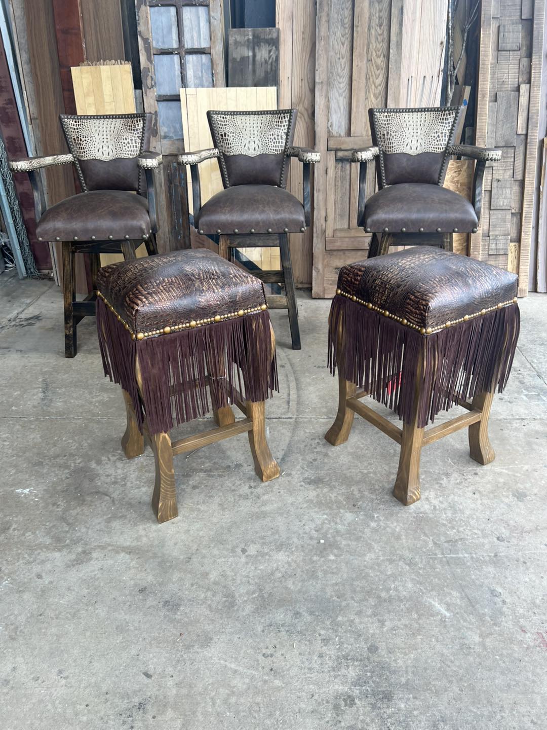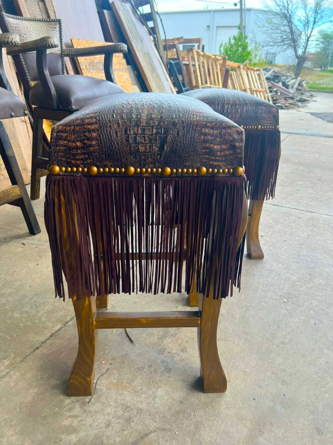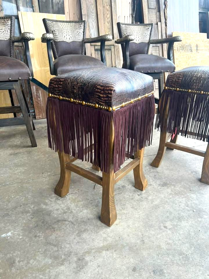 Laredo Leather Western Bar Stools with Fringe