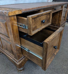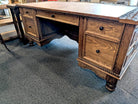 Create an inspiring workspace with this western-inspired executive desk designed for serious functionality. Three generous storage drawers and two dedicated file drawers keep your workspace organized and efficient, while smooth heavy-duty glides ensure effortless access every time. Built to last with expert craftsmanship and authentic rustic styling, this customizable desk transforms your office into a productive haven that reflects both your work ethic and distinctive taste.