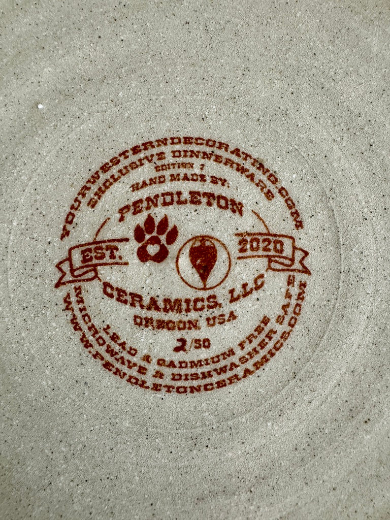 The collection is handmade, to order, by Pendleton Ceramics, LLC right here locally in Pendleton, Oregon. Only available from Blue Mountain Brands USA and Your Western Decor.