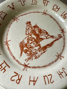 This western dinnerware collection features authentic ranch brands that we have gathered from ranches scattered throughout Umatilla County, Oregon.