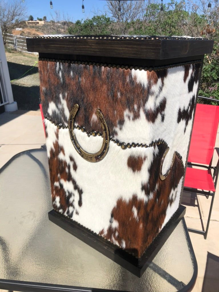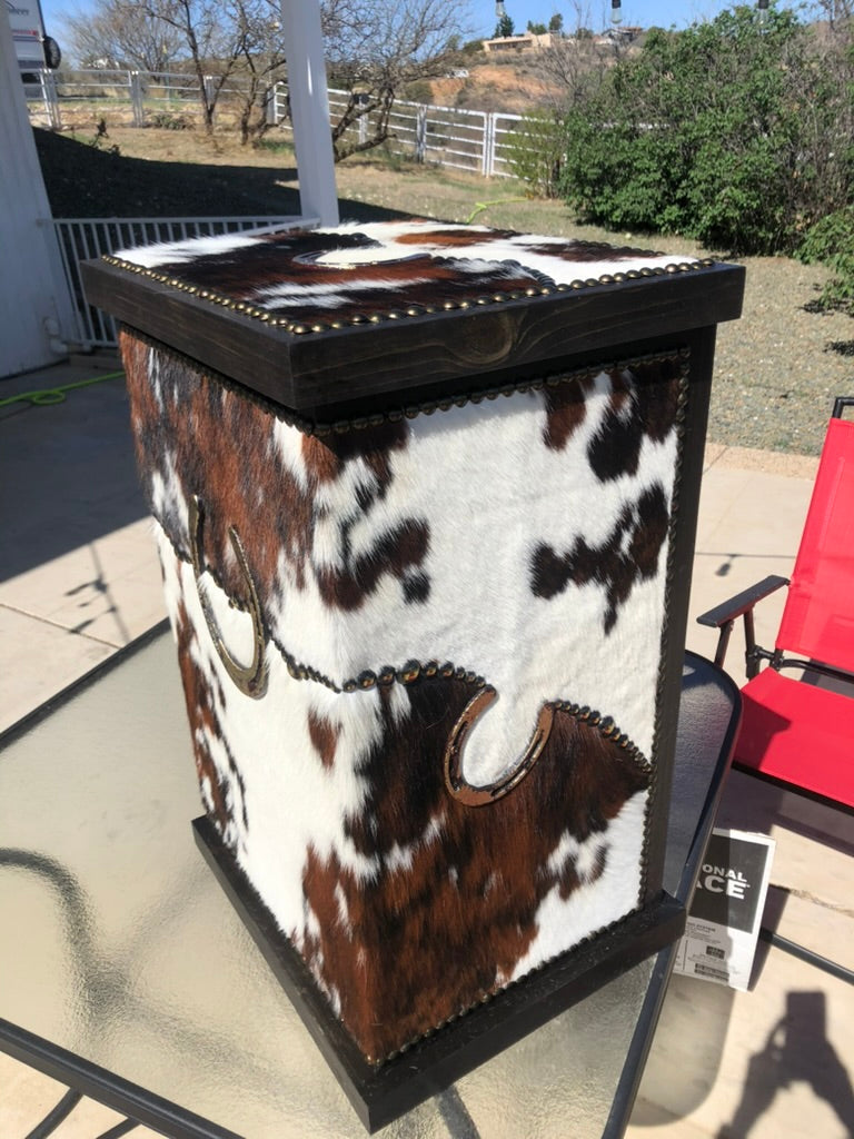 Discover the perfect blend of rugged charm and smart storage with this handcrafted cowhide bin. Upholstered in genuine hide and fully customizable, it transforms clutter into a design statement—ideal for stashing pet gear, linens, or everyday essentials. Whether you're building out a western-inspired retreat or adding authentic character to a contemporary space, this striking piece proves that storage doesn't have to compromise on style. It's the kind of functional accent that anchors a room while keeping your home organized and beautifully curated.