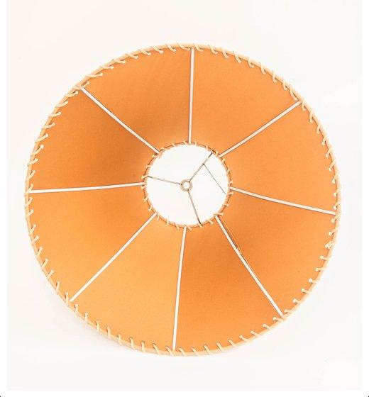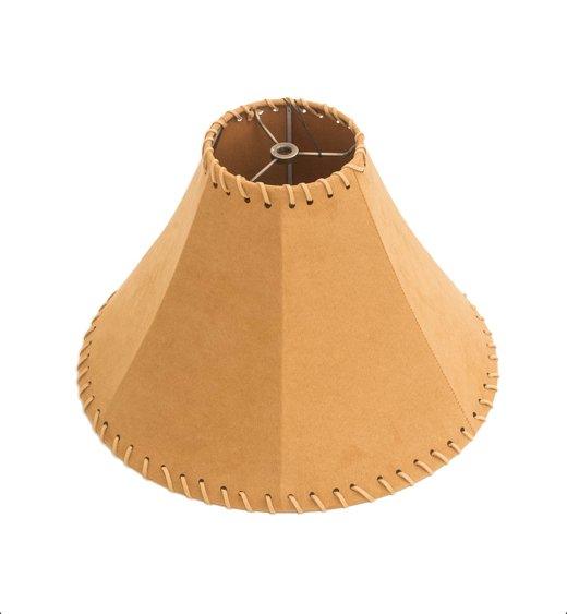 Our handsome Tan Faux Leather Lamp Shade is trimmed with hand laced faux leather whip stitching.