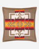 Woven in the Pacific Northwest mills, this is one of Pendleton's oldest designs dating back to the 1920s. It pays tribute to the bravery, resilience, and honor of Chief Joseph, the courageous Nez Perce leader. The iconic pattern features bold arrowheads, symbolizing his unwavering courage, strength, and integrity. Filled with imported feathers and carefully felt-bound, this pillow is a must-have for any lover of quality and style.