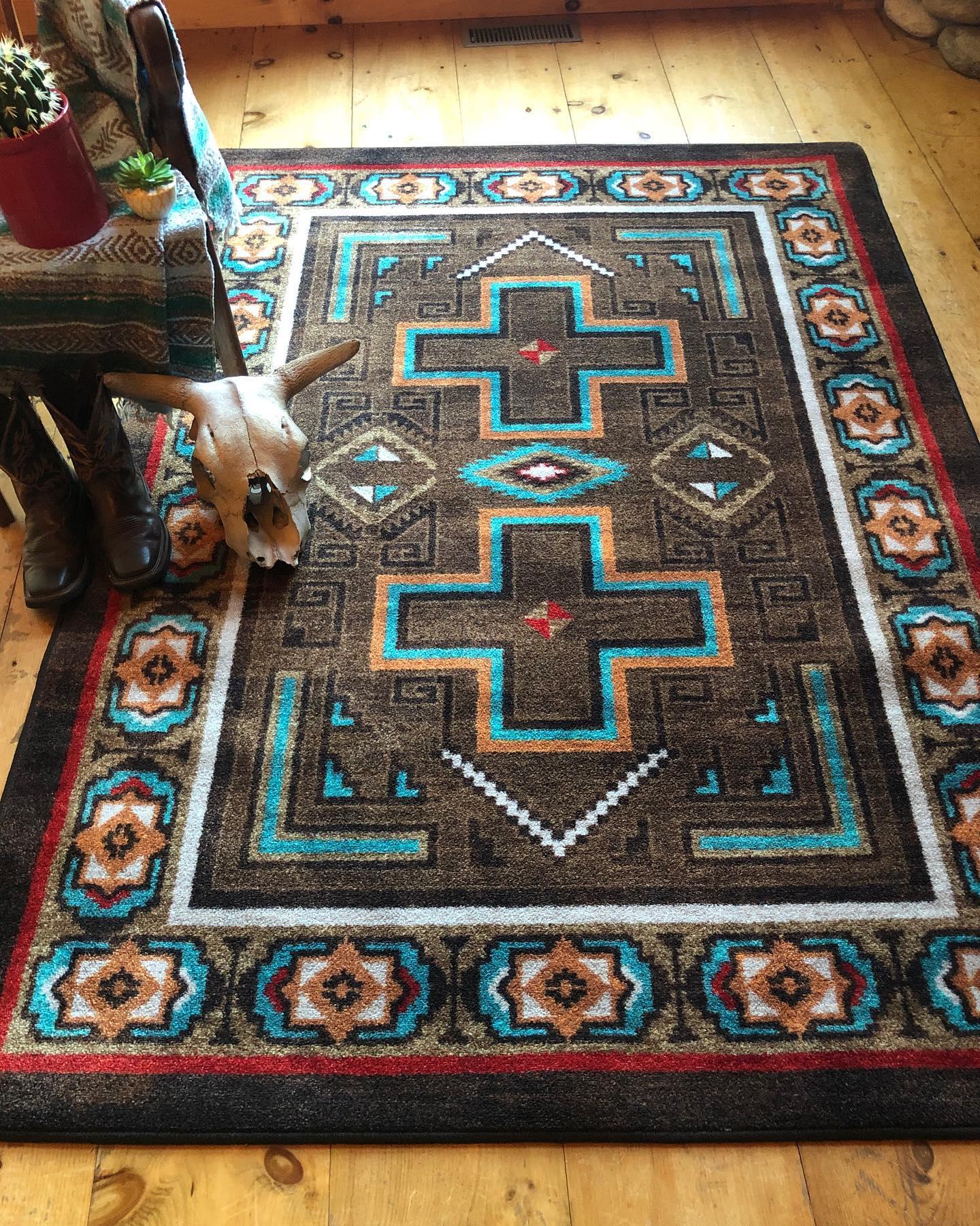Transform any room with our USA-made Sawtooth Southwestern Rugs, showcasing the rich hues of the Southwest. Available in multiple sizes, add a touch of rustic and Southwestern charm to your hallways, living space, bathrooms, dining room, or any other area in need of luxurious floor coverings.